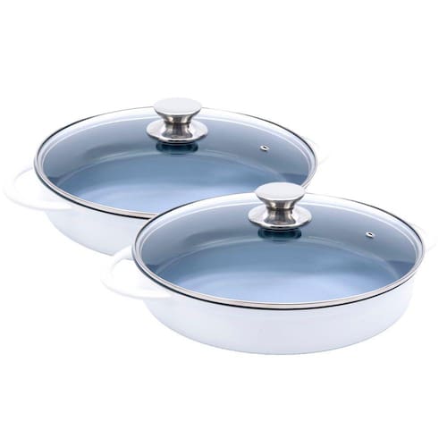 Kit com duas Caçarolas Baixa Hercules na cor Branca sendo: 1 Caçarola Baixa de 3,5 Litros + 1 Caçarola Baixa de 3,5 Litros.