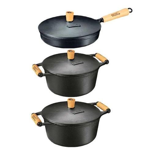 Kit Caçarola Frigideira Ferro Alça e Cabo Madeira 19 e 25cm