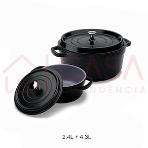 Com capacidade de 2,4 litros e 4,3 litros, as caçarolas possuem tamanho de 21,3x9cm e 25,4x11cm, respectivamente. São compatíveis com fogão convencional a gás, indução e halogênio, e podem ser utilizadas diretamente na mesa, pois suportam altas temperaturas.