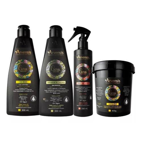 Kit cachos arvensis day after+ativ.Crespos+masc.2x1+co-washNeste anúncio contém:1 unidade condicionador co-wash arvensis 300ml1 unidade ativador cachos crespos e crespíssimos arvensis 300ml 1 unidade spray day after arvensis 250ml1 unidade mascara cachos 2x1 arvensis 450gCondicionador co-wash arvensisCondicionador limpante com anfótero, permitindo uma limpeza suave e eficiente, além de preservar a integridade e a oleosidade natural dos cabelos. Substitui o uso do shampoo. 300 ml - ph 4,0 - 4,5Indicação: indicado para todos os cachos praticantes da técnica sem shampoo no poo .Principais ativos: óleo de coco; colágeno vegetal; vitamina e.Ativadorcachos crespos e crespissimos arvensisO ativador de cachos crespos e crespíssimos foi desenvolvido para definir a ondulação, possui ação protetora, resistência, formação de filme, controle de frizz, mantendo a umidade natural e definindo cachos radiantes. Contém filtro solar. 300ml - ph 3,5 - 4,5Indicação: cabelos crespos e crespíssimos 3b / 3c / 4a / 4b / 4c .Principais ativos: óleo de coco; colágeno vegetal; abacate.Spray day after arvensisOs cabelos cacheados, muitas vezes, sofrem com o aspecto amassado, o frizz excessivo e a perda da definição dos cachos. Pensando nisso, a arvensis desenvolveu o day after, um spray com efeito memória que confere ultra definição aos cabelos, além de promover hidratação, elasticidade, controle do frizz, brilho e maciez. Com uma formulação enriquecida com filtro solar, protege os cabelos da ação nociva dos raios uv e da oxidação que leva ao envelhecimento precoce dos fios. 250ml ph 3,5 4,5Indicação: todos os cachos.Principais ativos: água de coco; colágeno vegetal; filtro solar.Máscara cachos 2x1 arvensisA máscara cachos naturais 2x1 foi desenvolvida para atuar como hidratante e finalizador para cabelos crespos e crespíssimos. Elaborado através da perfeita combinação de óleo de coco, colágeno vegetal, abacate e vitamina e, a máscara proporciona inúmeros benefícios como nutrição avançada, reparação dos fios danificados, alta hidratação, maciez e brilho extra.Sua ação protetora e multifuncional - enriquecida com filtro solar - ainda confere resistência, formação de filme e controle de frizz, além de manter a umidade natural para cachos nutridos e radiantes. Ideal para ser utilizada na técnica sem shampoo.Principais ativos:- óleo de coco: alto poder umectante e hidratante, repõe nutrientes e age na diminuição do frizz. Ainda tem ação de selamento de cutículas evitando pontas duplas.- colágeno vegetal: fornece aminoácidos e proteínas para nutrição funcional da fibra, promove hidratação e restaura a elasticidade dos fios. Forma um filme flexível ultra substantivo que protege e define os cachos, além de atuar no controle do frizz.-abacate: o extrato natural de abacate possui propriedades emolientes que promovem hidratação profunda, nutrição e vitalidade aos cabelos.-ph: 3,5-4,5Indicação: cabelos crespos e crespíssimos 3b / 3c / 4a / 4b / 4c .