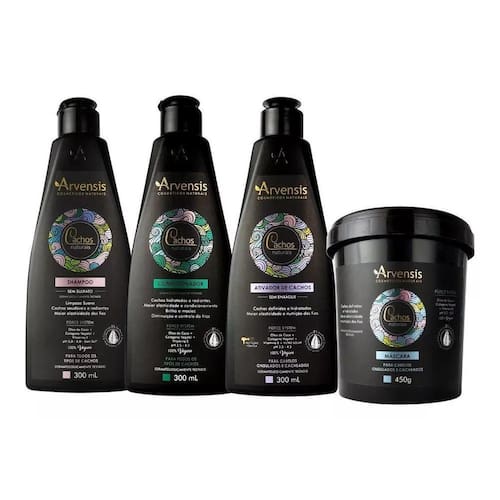 Kit cachos arvensis sh+cond+ativador 300ml+masc. Ondul. 450gNeste anúncio contém:1 unidade shampoo cachos arvensis 300ml1 unidade condicionador cachos arvensis 300ml1 unidade ativador de cachos ondulados e cacheados arvensis 300ml1 unidade mascara ondulados e cacheados 450gShampoo cachos naturais arvensisO shampoo cachos naturais foi desenvolvido com uma formulação livre de sulfato e sal, especial para a limpeza suave de todos os tipos de cabelos cacheados. Elaborado através da perfeita combinação de óleo de coco, colágeno vegetal e vitamina e, o shampoo cachos naturais proporciona inúmeros benefícios como reparação dos fios danificados, aumento da elasticidade, maciez e brilho extra. Sua ação protetora ainda confere resistência, formação de filme e controle de frizz, além de manter a umidade natural para cachos nutridos e radiantes.Principais ativos:- óleo de coco: alto poder umectante e hidratante, repõe nutrientes e age na diminuição do frizz. Ainda tem ação de selamento de cutículas evitando pontas duplas.- colágeno vegetal: fornece aminoácidos e proteínas para nutrição funcional da fibra, promove hidratação e restaura a elasticidade dos fios. Forma um filme flexível ultra-substantivo que protege e define os cachos, além de atuar no controle do frizz.- ph 5-6Indicação: todos os cachos.Condicionador cachos naturais arvensisO condicionador cachos naturais foi desenvolvido com uma formulação especial, ideal para a hidratação de todos os tipos de cabelos cacheados. Elaborado através da perfeita combinação de óleo de coco, colágeno vegetal e vitamina e, o condicionador cachos naturais proporciona inúmeros benefícios como nutrição avançada, reparação dos fios danificados, condicionamento equilibrado, aumento da elasticidade, maciez e brilho extra. Sua ação protetora ainda confere resistência e controle de frizz, além de manter a umidade natural para cachos nutridos e radiantes.Principais ativos:- óleo de coco: alto poder umectante e hidratante, repõe nutrientes e age na diminuição do frizz. Ainda tem ação de selamento de cutículas evitando pontas duplas.- colágeno vegetal: fornece aminoácidos e proteínas para nutrição funcional da fibra, promove hidratação e restaura a elasticidade dos fios. Forma um filme flexível ultra-substantivo que protege e define os cachos, além de atuar no controle do frizz.- ph: 4-4,5Indicação: todos os cachos.Creme ativador cachos ondulados e cacheados arvensisA ação protetora do ativador de cachos ondulados e cacheados confere resistência, formação de filme, controle de frizz, mantendo a umidade natural e definindo cachos radiantes. Contém filtro solar. 300ml - ph 4,0 - 4,5Indicação: cabelos ondulados e cacheados 2a / 2b / 2c / 3a .Principais ativos: óleo de coco; colágeno vegetal.Mascara ondulados e cacheados arvensisA máscara ondulados e cacheados promove hidratação equilibrada com ação intensiva proporcionando inúmeros benefícios como nutrição avançada, reparação dos fios danificados, maciez e brilho extra. 450g - ph 3,5 - 4,5Indicação: cabelos ondulados e cacheados 2a / 2b / 2c / 3a .Principais ativos: óleo de coco; colágeno vegetal.