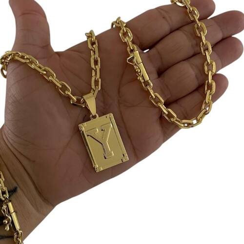 Kit Cadeado 7mm + Pingente Letra Banhado a Ouro 18K Detalhes do Produto: Material: ligas metálicas de alta qualidade, especialmente tratadas para fixação e absorção do ouro, com acabamento em verniz protetor. Aparência: visual idêntico ao ouro maciço. Produção: artesanal, com atenção meticulosa aos detalhes. Banho: 10 camadas espessas de ouro 18k, finalizadas com verniz antialérgico . Elos: soldados varia conforme o modelo . Pedras: zircônias brilhantes cravejadas quando aplicável . Tamanhos Disponíveis: Cordões Masculinos: 70cm padrão e 60cm sob consulta/Pedido Via Chat . Cordões Femininos: 50cm padrão e 45cm sob consulta/Pedido Via Chat . Pulseiras: 21cm padrão ; tamanhos de 18cm a 23cm sob consulta/Pedido Via Chat. Pingentes: conforme imagens; consulte para mais detalhes via chat. Espessuras Recomendadas para Cordões / Pingentes: P: 1mm a 4mm M: 4mm a 8mm G: 6mm a 13mm Gg: 12mm a 18mm Incluso na Compra: Saquinho de organza para armazenamento seguro. Caixa elegante, perfeita para presente. Cupom de desconto para a próxima compra. Flyer com outros produtos da coleção. Carta de agradecimento personalizada. Adesivo da marca ToJoia18k. Informações Adicionais: : 6 meses termos acompanham o produto . Devolução: 7 dias para devolução sem questionamentos. Envio: despacho em até 24 horas úteis após confirmação do pagamento. Cuidados com a Peça: Evite contato com produtos químicos; aguarde o perfume secar antes de usar. Evite contato com shampoo, condicionadores e suor excessivo. Armazene em local seco, preferencialmente no saquinho de organza fornecido. Uso no mar e piscina é permitido; lave com água corrente e sabão neutro após. Por que Escolher a ToJoia18k Semi-joias luxuosas que combinam estilo, qualidade e sofisticação. Banho espesso de ouro 18k, garantindo brilho duradouro e acabamento impecável. Design exclusivo e produção artesanal, perfeitos para qualquer ocasião. Materiais premium que asseguram durabilidade. Ao escolher uma semi-joia ToJoia18k, você investe em qualidade, elegância e uma experiência única. Aguardamos sua compra Observação: pode ocorrer variação no fecho raramente . Imagens reais, sem edição. Qualquer dúvida, estamos à disposição para esclarecimentos. Marca: Não Informado