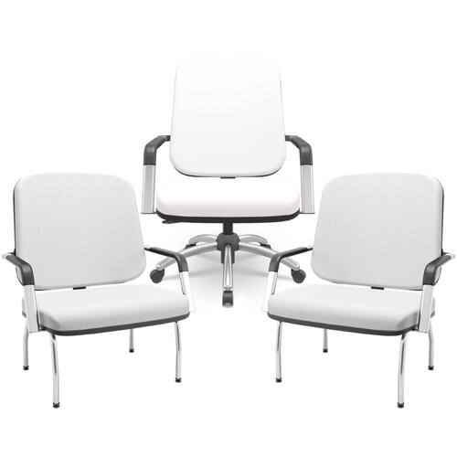 Cada peça combina um design moderno e robusto, projetado para atender às necessidades de pessoas sobrepeso, sem comprometer o estilo. As cadeiras fixas garantem estabilidade e apoio em momentos de conversa ou trabalho, enquanto a cadeira giratória oferece a liberdade de movimento e versatilidade, perfeita para dinâmicas de escritório. Todas com tapeçaria de alta densidade e acabamentos de qualidade, a fim de promover uma experiência de uso agradável e segura.