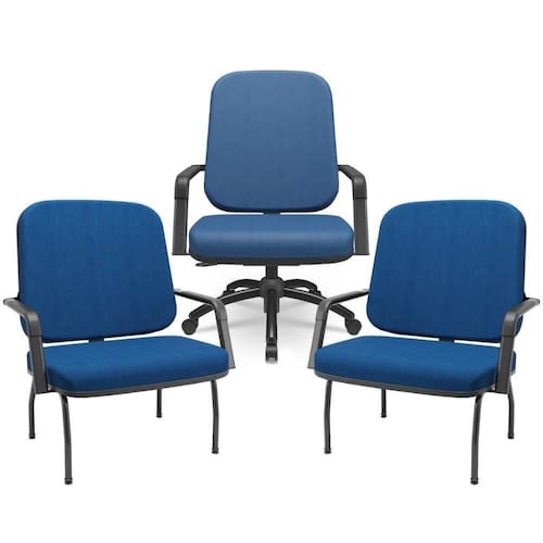 Cada peça combina um design moderno e robusto, projetado para atender às necessidades de pessoas sobrepeso, sem comprometer o estilo. As cadeiras fixas garantem estabilidade e apoio em momentos de conversa ou trabalho, enquanto a cadeira giratória oferece a liberdade de movimento e versatilidade, perfeita para dinâmicas de escritório. Todas com tapeçaria de alta densidade e acabamentos de qualidade, a fim de promover uma experiência de uso agradável e segura.