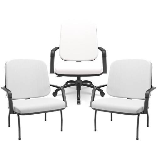 Cada peça combina um design moderno e robusto, projetado para atender às necessidades de pessoas sobrepeso, sem comprometer o estilo. As cadeiras fixas garantem estabilidade e apoio em momentos de conversa ou trabalho, enquanto a cadeira giratória oferece a liberdade de movimento e versatilidade, perfeita para dinâmicas de escritório. Todas com tapeçaria de alta densidade e acabamentos de qualidade, a fim de promover uma experiência de uso agradável e segura.