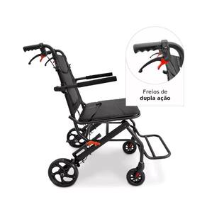 -Compacta, dobrável e fácil de transportar, cabe em qualquer porta-malas. -Estrutura em aço carbono, robusta e resistente. -Assento e encosto acolchoados, com apoio de braços escamoteáveis. -Rodízios frontais 360º para mobilidade em corredores e espaços estreitos. -Cinto de segurança integrado e freios nas rodas traseiras. -Suporta até 100kg.