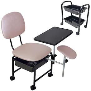 Kit de Cirandinha Manicure mais carrinho auxiliar com duas bandejasIdeal para Manicure e Pedicure, prática, compacta e resistente, seu espaço merece este confortoEste Kit compõe:1 Cirandinha Manicure1 Carrinho auxiliarMarca: For-ty Características Cirandinha:Estrutura metálica com pintura eletrostáticaEstofado em tecido Facto, o tecido Facto é resistente ao uso de Álcool 70 para limpeza e higienização. Apoio para as mãos articulável em MDF ou MDPApoio para o pé com regulagem de altura e inclinação - removível. Com regulagem de altura aproximada mínima de 52 e máxima de 69cm Gaveta em plástico reforçado, feita com matéria prima virgem - não é reciclado.A altura do assento ao chão é de 40 centímetros.Espumas do encosto e Assento dom Densidade 23Dimensões do assento: 3 alt x 40,5 larg x 43,5cm comp Dimensões do encosto: 2,5 alt x 29 larg x 37cm comp Dimensões aproximadas do apoio de mão: 0,41 Larg x 0,25cm comp Suporta até 100 kgDimensões da cirandinha montada: 72 alt x 43 larg x 47cm comp Peso do produto: 8 Kg Características Carrinho Auxiliar para ManicureEstrutura metálica em tubo 3/4 - mais largo que similares no mercadoPintura EletrostáticaPossui 2 bandejas plásticas feitas com matéria prima virgem - não é recicladoPossui Rodinhas que facilitam a movimentação do produto.Peso aproximado de 2 KgDimensões do carrinho Montado: 41 alt x 22 larg x 35cm comp Dimensões da embalagem do Kit: 41 alt x 44 larg x 47cm comp Peso aproximado do Kit:10 Kg