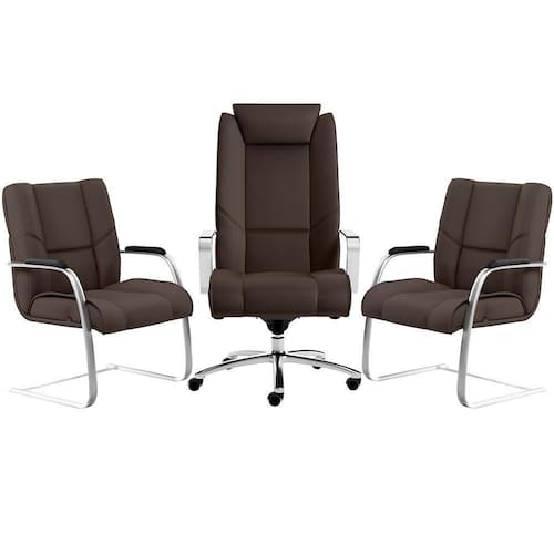 Trabalho, estudos e atividades corporativas, seja no escritório ou home office, precisam ser realizados com conforto e ergonomia para alcançarmos um bom desempenho. Pensada justamente para isso o Kit Cadeira Presidente Com 02 Cadeiras Fixas New Onix F02 Tecido Sintético Marrom - Lyam Decor é a melhor opção para suprir suas necessidades e superar todas as expectativas.
