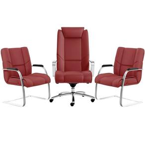 Trabalho, estudos e atividades corporativas, seja no escritório ou home office, precisam ser realizados com conforto e ergonomia para alcançarmos um bom desempenho. Pensada justamente para isso o Kit Cadeira Presidente Com 02 Cadeiras Fixas New Onix F02 Tecido Sintético Vermelho - Lyam Decor é a melhor opção para suprir suas necessidades e superar todas as expectativas.