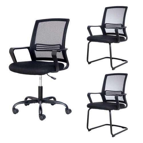 Kit Cadeiras De Escritório, 1 Cadeira Bhutan Com Base Giratória + 2 Cadeiras Bhutan Base Fixa Com seu ajuste de altura, você poderá fixar a posição de seu torso em relação à mesa de trabalho e assim obterá uma cadeira mais confortável ao nível de suas necessidades. Os apoios de braços vão favorecer a sua postura ao escrever e o ajudarão a se incorporar com mais facilidade quando quiser.