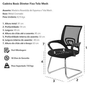 Kit Cadeiras De Escritório, 1 Cadeira Tela Mesh Com Base Giratória + 2 Cadeiras Tela Mesh Base Fixa A escolha de uma cadeira adequada é muito importante para evitar futuras lesões. Com esse kit da WAW Design você terá o conforto é o bem-estar que precisa ao longo do seu dia. Além disso, você pode colocá-la em qualquer lugar da sua casa ou oficina, pois o seu design se adapta a vários ambientes. Dê um toque mais moderno aos seus espaços! Com seu ajuste de altura, você poderá fixar a posição de seu torso em relação à mesa de trabalho e assim obterá uma cadeira mais confortável ao nível de suas necessidades.