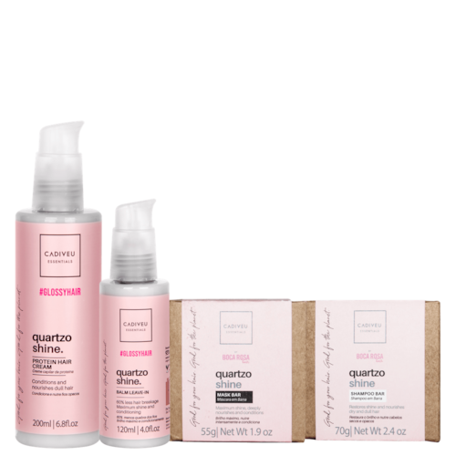 Kit de tratamento para cabelos secos e opacos. Cadiveu Essentials Quartzo Shine by Boca Rosa Hair Ritual em Barra promove limpeza profunda, nutre intensamente e dá brilho.