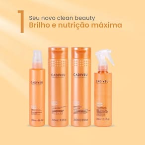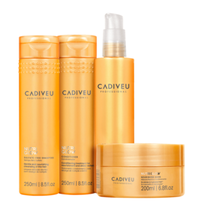 O Kit Cadiveu Professional Nutri Glow Quatre apresenta um poderoso tratamento de máxima recarga de nutrição que resgata os cabelos ressecados e sem vida. Sua fórmula deixa o cabelo 8x mais brilhante, hiper nutrido, com aquele efeito brilho espelhado e toque aveludado, além de garantir ação antifrizz de longa duração.