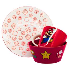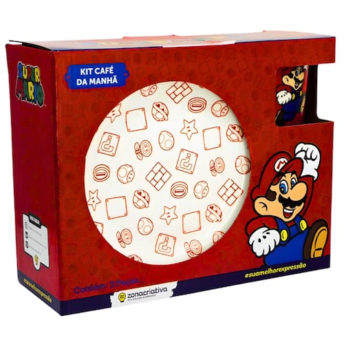 Kit Café Da Manhã Caneca Bowl Cerâmica Mario Zona Criativa - Cor: Super Mario