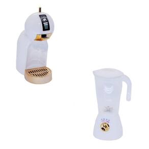 o kit vem com caixa registradora com dinheirinho e mercadinho com frutas, legumes e comidinhas, cafeteira e liquidificador, microondas, xícara com pires e colher, bulê, açucareiro, batedeira, escorredor com louça, geladeira com acessórios, jogo de panelas com acessórios