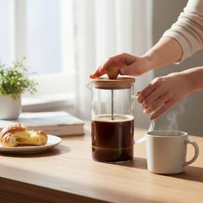 Preparo de café fresco, aromático e saboroso na Prensa Francesa Possibilidade de criar cappuccinos, lattes e outras bebidas com a jarra barista Design elegante com acabamento em bambu e inox. Fácil de usar e limpar. Ótima opção para uso doméstico ou como presente para amantes de café