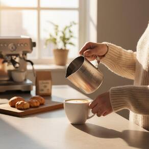 . Jarra Barista Inox 350ml Produzida em aço inoxidável de alta durabilidade Ideal para vaporização e preparo de espuma de leite Capacidade de 350ml Alça anatômica para melhor manuseio Benefícios do kit: Permite preparar cafés frescos, aromáticos e saborosos Ideal para cappuccinos, lattes, macchiatos e outras bebidas Combina resistência e design moderno