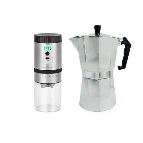 -Moedor De Café Automático Recarregável Usb Vidro E Inox -Cafeteira Italiana Aluminío 450 Ml Para 9 Xicaras 5x10,5cm
