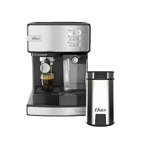 Características Gerais do produto Kit Oster cometros Cafeteira Espresso PrimetrosaLatte Inox (19 bars, reservatório 1,5L, cometrospatível cometros Nespresso) e Moedor de Café Inox (150W, 50g capacidade).