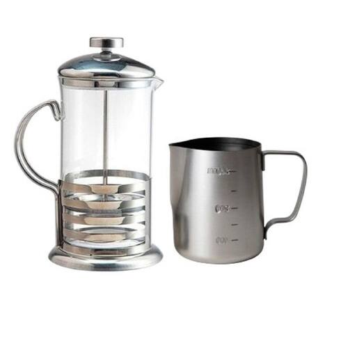 Kit Café - Cafeteira Francesa em Inox + Jarra Barista Aço Inox 350ml