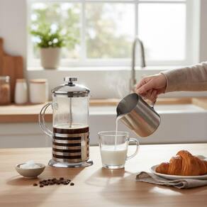 O Kit Café com Cafeteira Francesa e Jarra Barista é ideal para quem aprecia praticidade e sabor no preparo de bebidas. A Cafeteira Francesa em Inox proporciona extração completa do café ou chá, mantendo o aroma e os óleos naturais do grão. Já a Jarra Barista de Aço Inox 350ml é perfeita para aquecer e vaporizar leite, criando a espuma cremosa ideal para cappuccinos, lattes e outras receitas.