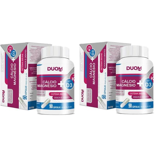 Kit cálcio magnésio+vitamina d3 vit k2 duom 90cáps - 2 unidades cálcio + magnésio + vitaminas k2 e d3 com 90 cápsulas duom