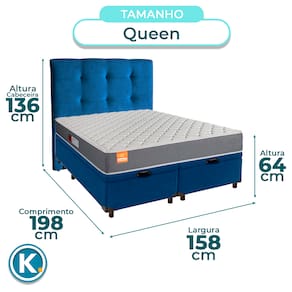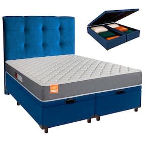 Kit Cama Box Bau + Cabeceira + Colchão Queen D23 - Pro - Inducol - Azul