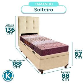 Modelo: Elite Marca: Nature Tamanho: Solteiro Tecido: Veludo Largura: 88cm Comprimento: 188cm Altura: 35cm Altura dos Pés: 7cm Material dos Pés: Madeira Suporte de Peso: 150Kg Peso: 22Kg Garantia: 3 Meses