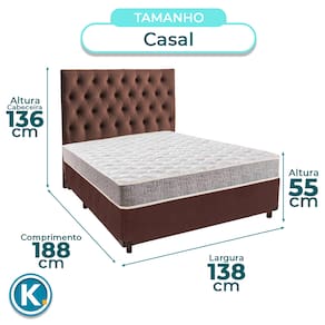 Conjunto Casal Colchão D33 + Cama BoxColchão Casal com 17cm de altura, ideal para conforto no dia a diaRevestimento em poliéster com toque suave e boa durabilidadeEspuma D33 firme, que oferece ótimo suporte para coluna e posturaBase box Casal ideal para otimizar o espaço do quarto com praticidadeRevestimento em Veludo: fácil de limpar e com visual modernoEstrutura firme e resistente com suporte para até 150kgFicha Técnica Colchão:Modelo: D33Marca: InducolTamanho: CasalTecido: PoliésterLargura: 138cmComprimento: 188cmAltura: 17cmSuporte de Peso: 100KgGarantia: 3 MesesFicha Técnica Cama Box:Modelo: UniversalMarca: NatureTamanho: CasalTecido: VeludoLargura: 138cmComprimento: 188cmAltura: 25cmAltura dos Pés: 13cmMaterial dos Pés: MadeiraSuporte de Peso: 150KgPeso: 27KgGarantia: 3 MesesAtenção:Antes da compra certifique-se de que o produto passa por elevadores, portas e corredores.As transportadoras não realizam entregas por escadas ou içamentos.Caso o item não caiba no elevador, a entrega será considerada concluída no térreo do prédio.A cor e tonalidade do produto pode variar de acordo com o dispositivo que o usuário está acessando.