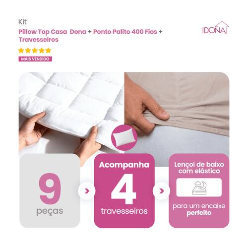 01 Pillow, Capa e Protetor de Colchão Casa Dona Top 400 Fios Percal Hipoalérgico Super Macio Solteiro, Casal, Queen e King