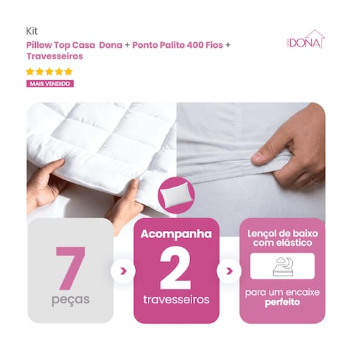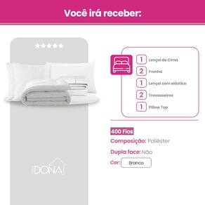 01 Pillow, Capa e Protetor de Colchão Casa Dona Top 400 Fios Percal Hipoalérgico Super Macio Solteiro, Casal, Queen e King
