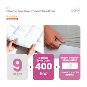 01 Pillow, Capa e Protetor de Colchão Casa Dona Top 400 Fios Percal Hipoalérgico Super Macio Solteiro, Casal, Queen e King
