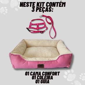 Kit Cama Peluciada Confort 50X40 Cm E Coleira Peitoral Pet
