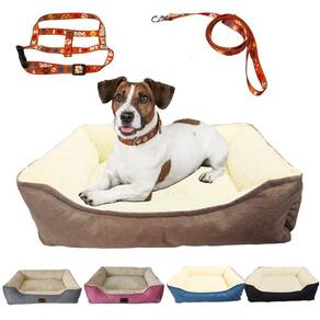 Kit Cama Peluciada Confort 50X40 Cm E Coleira Peitoral Pet