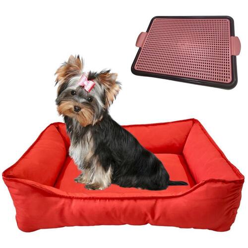 Kit Cama Retangular Tactel M E Sanitário Pet Com Grade Médio Cor: Vermelho Seja bem vindo à nossa loja Oficial da Dog Cat Store.