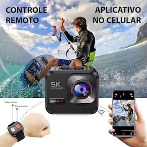 A Câmera Esportiva v8 5k com Estabilizador de Imagem, chega trazendo muitas novidades e atualizações em relação aos modelos anteriores, com gravação de vídeo na resolução de 5k (5120 x 2880 pixels) e dispondo de estabilização de imagem eletrônico (EIS), com sensor IMX386, sendo utilizado algoritmo de compensação de imagem cruzada para compensar a mudança e produzir vídeos estáveis, permitindo que estabilize a câmera, e obtendo vídeos e fotos cinematográficas suaves, fluidas. Dispõe de lente com 160º grande angular, proporcionando um extenso ângulo de visibilidade, e microfone integrado que possibilita captar áudio durante as gravações. A prova d’água permitindo o uso subaquático até 5 metros de profundidade ou em dias de chuva, contando ainda com controle remoto e diversos acessórios inclusos.
