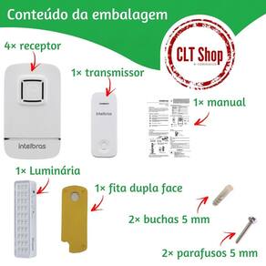 Informações básicas: A campainha ja vem com todos os itens necessários para funcionar, o cliente não precisará comprar mais nada para concluir a instalação do produto. Nesse Kit ja esta incluso 3 modulos interno extra, voce poderá receber o sinal sonoro da campainha em 4 ambientes diferentes.