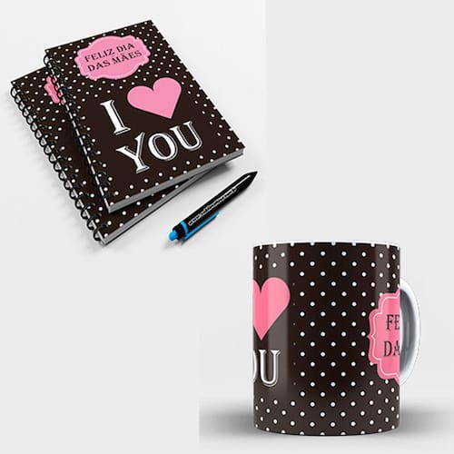 Kit Caneca e Caderno de Anotação Dia das Mães Mod. 03