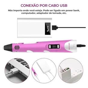 - marca: charbs - modelo: p62-2 - referência: ch00043 - cor: rosa - alimentação por cabo usb não acompanha carregador de parede - voltagem: bivolt - saída: dc 5v 2a - diâmetro do bico: 0,7mm - diâmetro do filamento: 1.75mm - trabalha com filamentos pla e abs - temperatura de aquecimento ajustável: 160ºc à 230ºc - velocidade de saída de filamento ajustável - grande durabilidade - fácil troca de filamento - design ergonômico - a caneta impressora 3d possui um design ergonômico para um melhor manuseio e funciona como uma impressora 3d ao ar livre, fundindo o plástico em uma temperatura elevada e criando objetos em 3 dimensões. - chega de paredes rabiscadas em casa além de ser inodora, não tóxica e ecologicamente correta, esta caneta é excelente para o desenvolvimento mental das crianças - permite a criação de objetos de decoração, brinquedos, desenhos, dentre diversas outras coisas com diferentes cores. - conta com painel de led indicador da temperatura de funcionamento e também com controlador de velocidade de saída do filamento, o qual pode ser trocado facilmente - super leve, apenas 65 gramas - tensão de entrada 5v - corrente: 2a - garantia: 90 dias