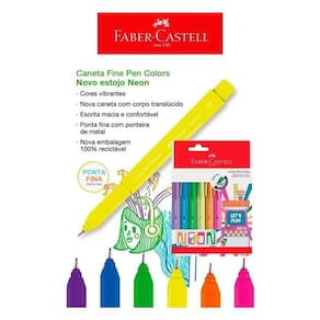 Kit Caneta Fine Pen Colors Pastel e Neon 12 Cores - Faber Castell