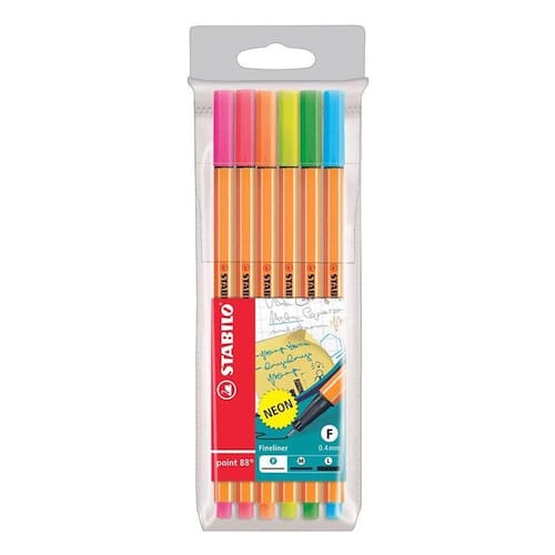 Kit Caneta Fineliner 0.4mm Point 88 6 Cores Neon - Stabilo