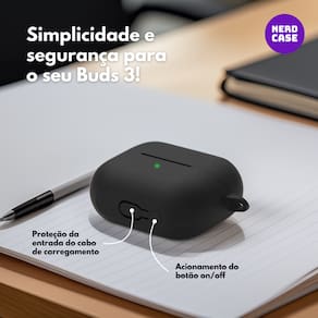 Tenha proteção e praticidade no dia a dia com a capa protetora de silicone preta da Nerdcase, desenvolvida para Galaxy Buds 3, Buds 3 Pro e Buds 3 FE. Feita em silicone resistente, oferece proteção contra riscos, impactos leves, poeira e manchas, garantindo mais segurança para os seus fones. O design ajusta-se perfeitamente ao estojo, permitindo carregamento sem fio sem precisar remover a capa. O kit acompanha mosquetão metálico para transporte fácil e caneta de limpeza 3 em 1, ideal para manter seus fones higienizados e sempre prontos para uso. Um combo indispensável para quem busca proteção, estilo e praticidade.