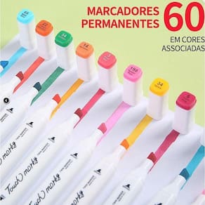 Marcadores de ponta dupla, totalizando 120 pontas, os marcadores são a base de álcool e não contém cheiro, ideal para crianças.