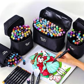 Conjunto de Canetas Marcador Permanente com Ponta Dupla Cores Vibrantes, Tinta à Base de Água e Estojo Organizador