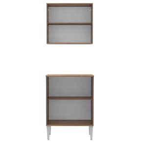 Itens Inclusos: 1 armário aéreo de 80 cm X 55 cm X 44 cm (LxAxP) com 1 prateleira interna, 1 porta convencional e adega acoplada; 1 balcão de 80 cm X 88 cm X 44 cm (LxAxP) com 1 prateleira interna, 1 porta convencional e tampo.