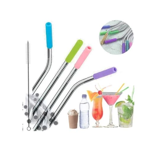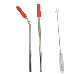 2 peças de Canudo de Inox, 1 Escova para Limpeza e 2 Protetores de Borracha.