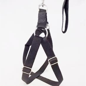 PEITORAL EM X E GUIA PARA CONDUÇÃO Neste modelo, as fitas passam por baixo das axilas do cão, ajustando se bem ao corpo, evitando asfixia, assim ele sentira uma leve pressão o que fará com que pare de puxar. 1 - guia de 100 cm em polipropileno 25 mm largura 2 - Peitoral - 50cm a 70cm
