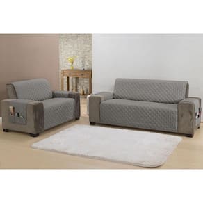 Kit Capa Protetora de Sofá 2 e 3 Lugares King Classic Face Única 1,20m e 1,80m - Cinza Os protetores de sofá são peças indispensáveis no nosso dia a dia. Além de conservarem seu sofá novo, limpo e bonito por muito mais tempo, você pode usá-los como itens de decoração, combinando com cortinas, tapetes e almofadas para deixar seu ambiente mais moderno e elegante. Contém na embalagem:1 Protetor face única para sofá de 2 lugares com medidas:Capa: 1,20m larg x 1,90m alt/Braços: 80cm comp x 40cm larg- Porta objetos no braço do lado direito- Medida total: 2,80m larg x 1,90m alt 1 Protetor face única para sofá de 3 lugares com medidas:Capa: 1,80m larg x 1,90m alt/Braços: 80cm comp x 40cm larg- Porta objetos no braço do lado direito- Medida total: 3,40m larg x 1,90m alt Composição:Tecido superior: Microfibra 100% PoliésterEnchimento: 100% PoliésterForro: 100% Polipropileno -- IMPORTANTE --- Esse modelo NÃO É dupla face ou impermeável- Protetor ideal para sofás com 1,20m e 1,80m de largura de assento, sem contar com os braços- Lavar separado de tecidos de algodão para não fazer bolinha Foto ilustrativa, tonalidade da cor no produto real pode variar um pouco. Produtos fabricados em Ibitinga-SP, a Capital Nacional do Bordado e do Enxoval. Qualidade é a nossa tradição Marca: Bordando Enxovais