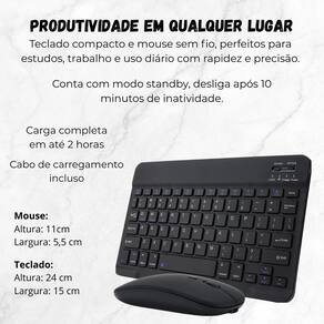 Kit capa + suporte + teclado + para tablet samsung s9fe x510 Cor: cinza Cansada de digitar direto na tela ou usar o tablet com pouca ergonomia Este kit é a solução perfeita para transformar seu tablet ou em uma verdadeira estação de trabalho Teclado e mouse bluetooth de conexão rápida e estável, você garante produtividade com conforto. As teclas são macias e silenciosas, e o mouse oferece precisão no clique. O suporte universal dobrável é leve, resistente e ajustável - ideal para usar em casa, no trabalho ou em viagens. Tudo funciona via bluetooth, sem cabos basta ligar os dispositivos, ativar o modo pareamento fn + c no teclado e conectar ao seu tablet ou . Reconhecidos como bluetooth keyboard e bluetooth mouse, você emparelha em segundos e aproveita a liberdade de trabalhar, estudar ou assistir com muito mais conforto. Adquira agora seu kit completo e leve mais praticidade, ergonomia e produtividade para o seu dia a dia. Compatível com ipads, tablets android, windows e muito mais ------------------ ------------------ O teclado e o mouse funcionam é universal R: sim o kit é compatível com ipads, tablets android, windows e qualquer dispositivo com bluetooth. Precisa de aplicativo ou cabo para usar R: não basta ligar o teclado e o mouse, ativar o bluetooth do seu dispositivo e conectar. É simples, rápido e sem fios. Como faço para conectar o teclado e o mouse Ligue o botão on no teclado e no mouse. - no teclado, pressione fn + c para ativar o modo pareamento. - no seu dispositivo, ative o bluetooth e conecte aos nomes bluetooth keyboard e bluetooth mouse. O suporte é ajustável R: sim o suporte é dobrável e permite diferentes ângulos para oferecer mais conforto ao assistir, digitar ou fazer chamadas de vídeo. Funciona com celular também R: sim, desde que o celular tenha bluetooth e suporte a dispositivos de entrada como teclado e mouse . Ideal para produtividade e praticidade ------------------ Especificações ------------------ Teclado bluetooth: Conexão: bluetooth 3.0 ou superior Alcance: até 10 metros Teclas: silenciosas e macias Ativação do bluetooth: fn + c Alimentação: via cabo usb cabo incluso Compatibilidade: ios, android, windows, ipados Mouse bluetooth: Conexão: bluetooth Botão liga/desliga na parte inferior Reconhecido como: bluetooth mouse Design ergonômico e leve Alimentação: bateria recarregável Compatibilidade: ios, android, windows, macos Suporte universal: Material: plástico resistente + base antiderrapante Dobrável e portátil Ângulo ajustável Compatível com tablets, ipads e celulares Ideal para uso em mesa, escritório, estudo ou lazer ------------------ Conteúdo ------------------ 1x teclado bluetooth 1x mouse bluetooth 1x suporte universal dobrável 1x cabo usb para recarga 1x manual de instruções Anúncio referente a teclado + mouse + suporte universal Acessórios que ambientam as fotos não inclusos. ------------------ Apresentação: ------------------ - qualidade garantida. - atendimento qualificado. - enviamos para todo o brasil. - compra garantida. - despachamos em até 1 dia útil após confirmação do pagamento Garantimos a devolução por arrependimento em até 7 dias, após o recebimento e de 15 dias contra defeitos de fabricação.