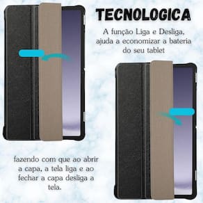como funciona o recurso de auto slep da capa magnética R: a capa possui um sensor magnético embutido que, ao ser fechado, coloca automaticamente o tablet em modo de suspensão, economizando energia e prolongando a vida útil da bateria. Ao abrir a capa, o tablet retorna instantaneamente ao estado de funcionamento normal.